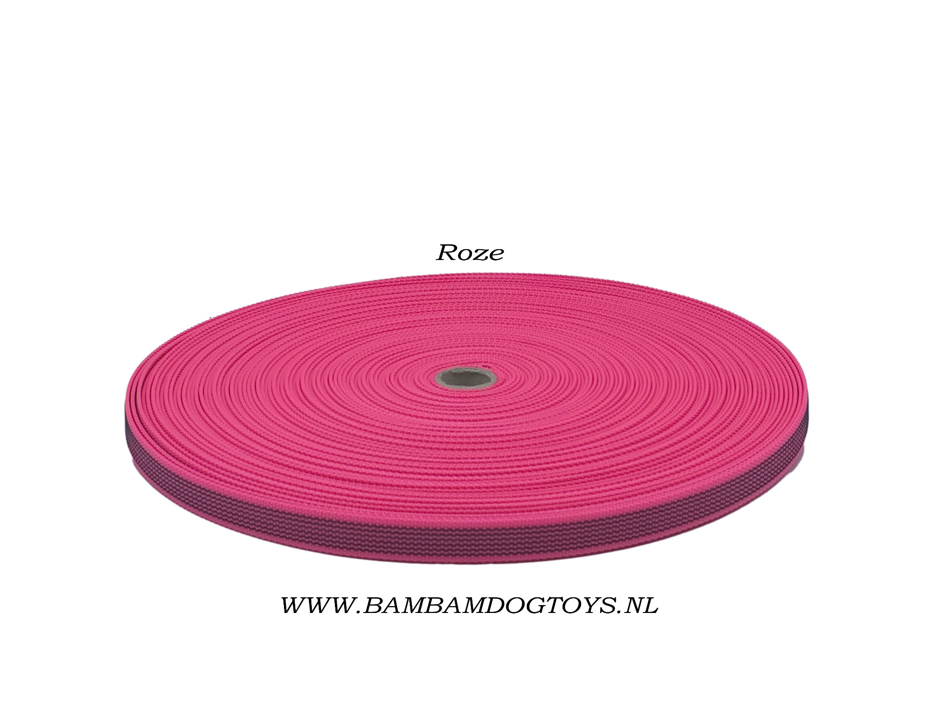 Dit is een lange (longeer) lijn van 5 tot maximaal 30 meter, bij 20mm breed, voorzien van een sluiting naar keuze en standaard een extra handgreep op plusminus 50 cm van de sluiting (korthouder).