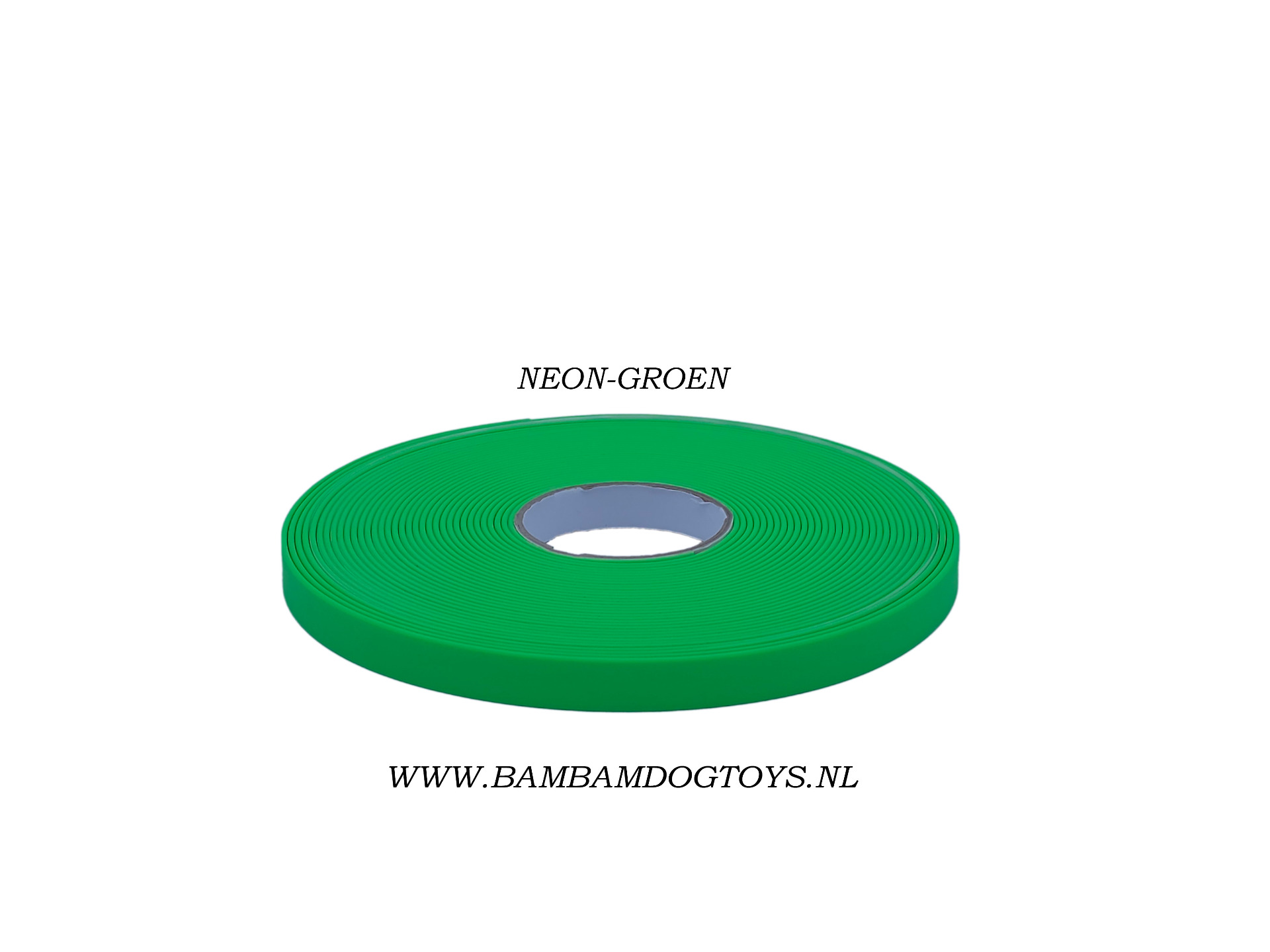 De riem is te bestellen in Neon-geel, Neon-groen, Neon-oranje, Neon-roze, Hemelblauw, Paars en Zwart.